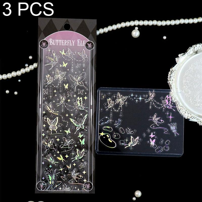 3 PCS Laser Stereo DIY Stickers Set Handbook Decorative Material Stickers(Butterfly Elves)