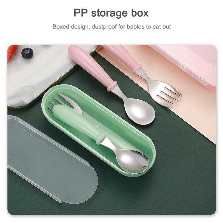 3 PCS/ Set 304 Stainless Steel Spoon and Fork Box Cute Baby Kindergarten Tableware Set(Pink)