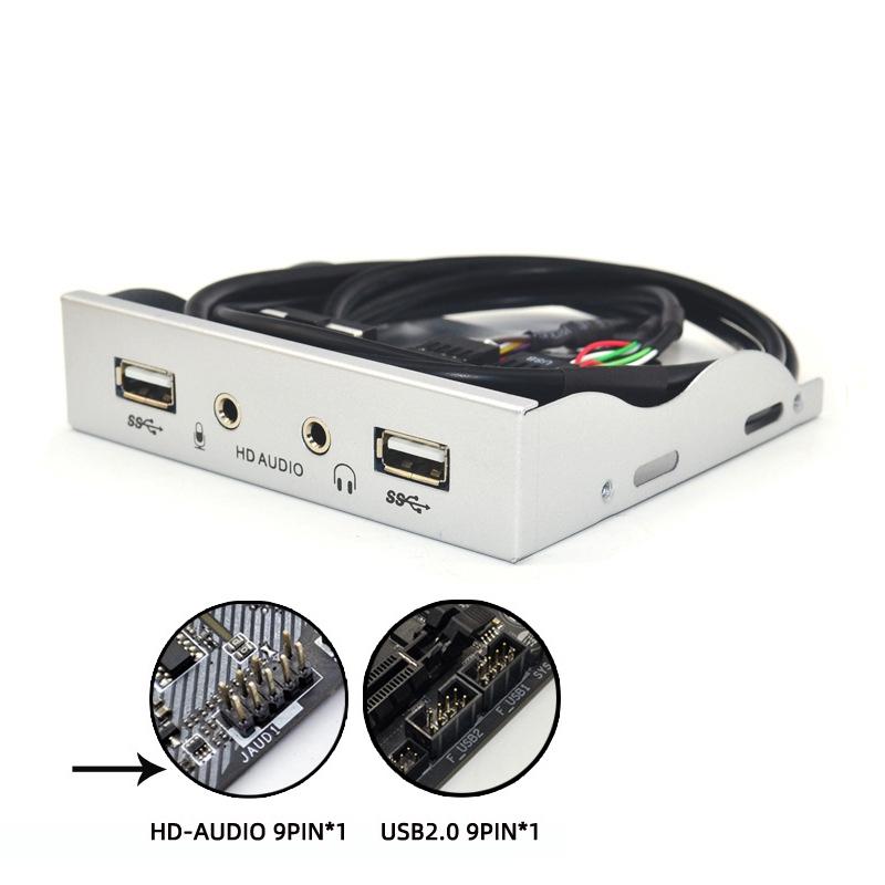 1. Product use: Installed in the idle floppy drive position, providing the front USB interface and audio interface, no need to bend down to plug in the cable, very convenient