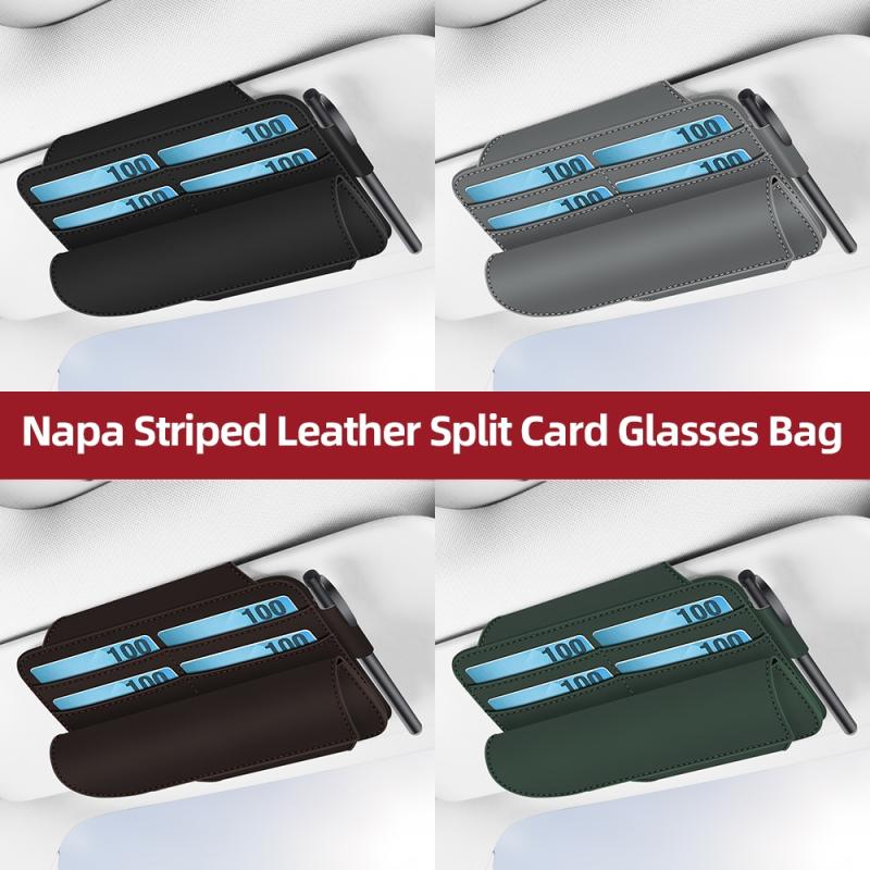 3073 Napa Texture Leather Car Removable Glasses Storage Bag(Black)
