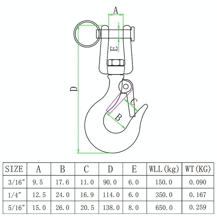 2. The rotating hook can rotate 360 degrees when working with other rigging accessories, and at the same time, you can change the lifting angle at will.
