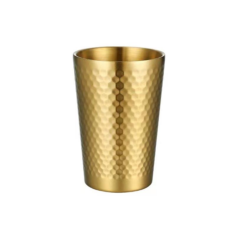 350ml 304 Stainless Steel Hammer Mug Thickened Double-Layer Restaurant Tea Cups(Gold)
