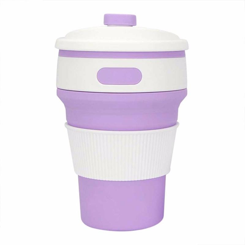 350ml Folding Portable Silicone Coffee Cup Multi-function Travel Cup (Purple)