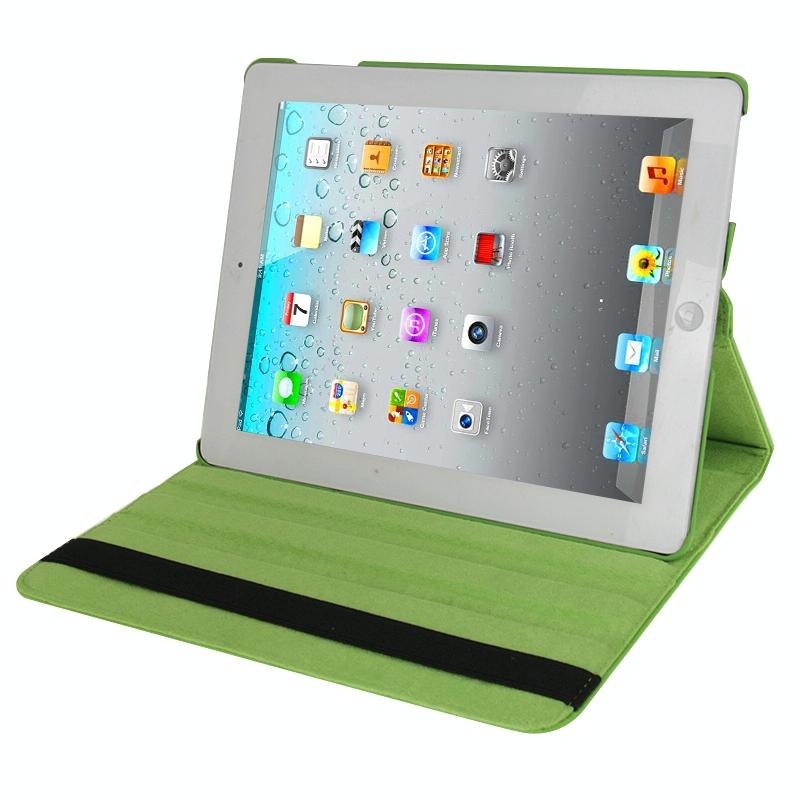 360 Degree Rotatable Leather Case with Sleep / Wake-up Function & Holder for New iPad (iPad 3)(Green)