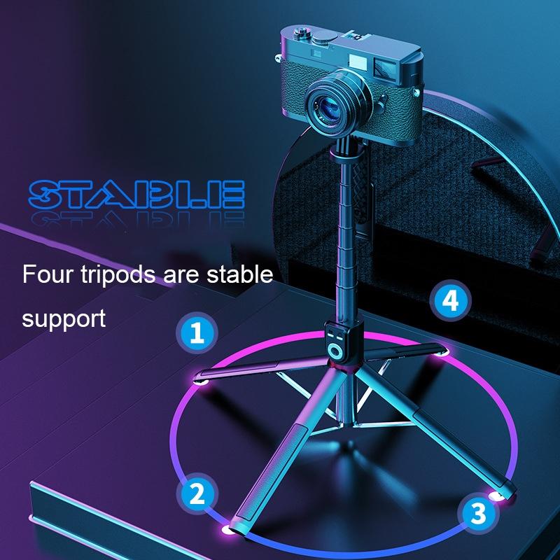 360-Degree Rotating Foldable Bluetooth Selfie Sticks Live Stand, Spec: P225 TK (Double Clip)
