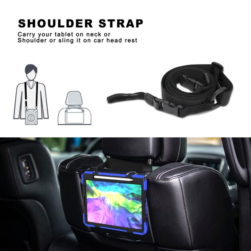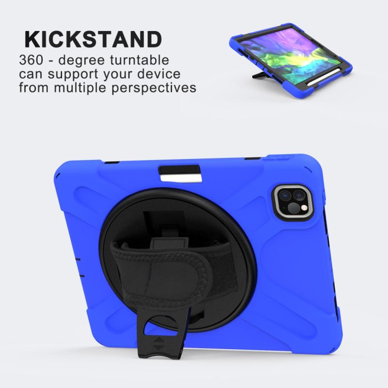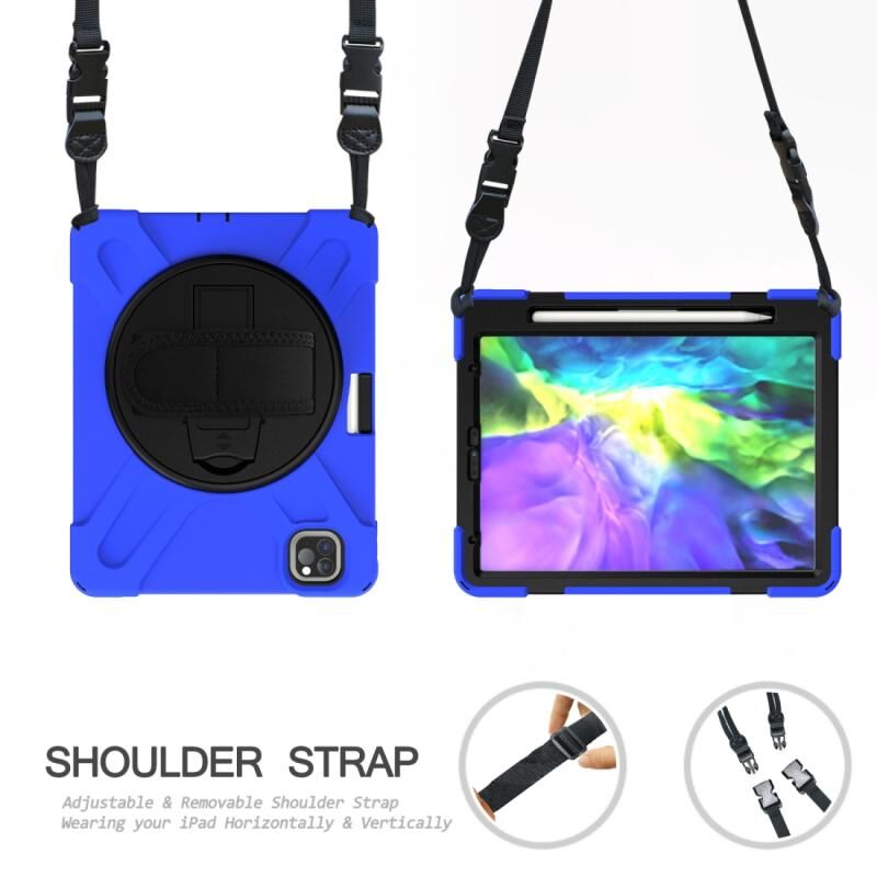 360 Degree Rotation Silicone Protective Cover with Holder & Hand Strap & Long Strap & Pencil Slot For iPad Air 2025 / 10.9 / Pro 11 2021 / 2020 / 2018(Blue)