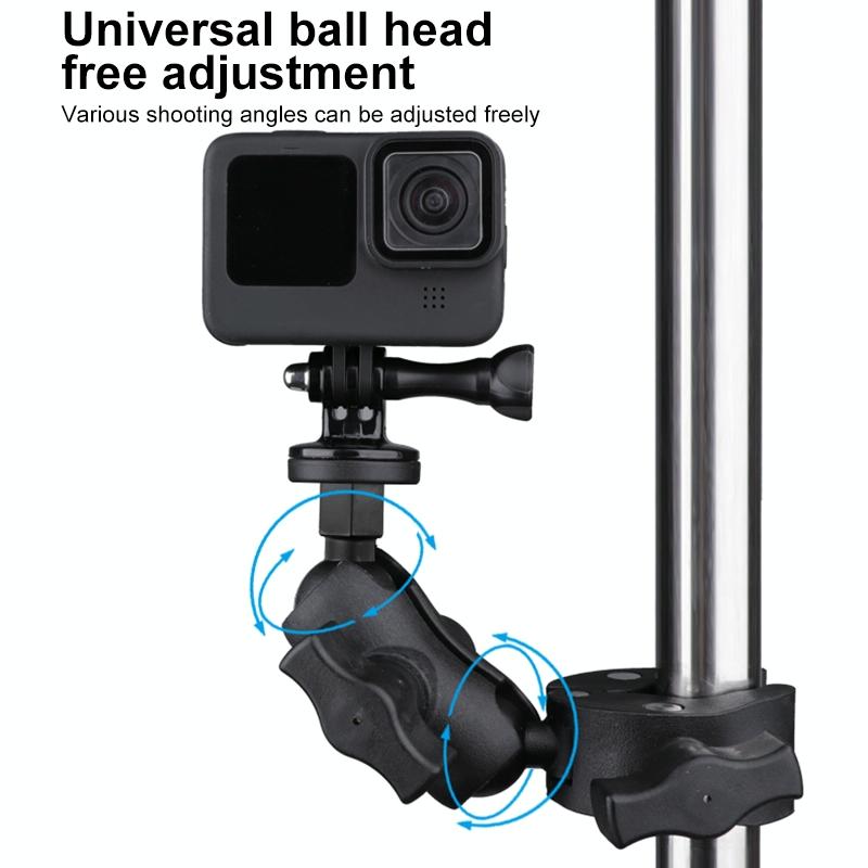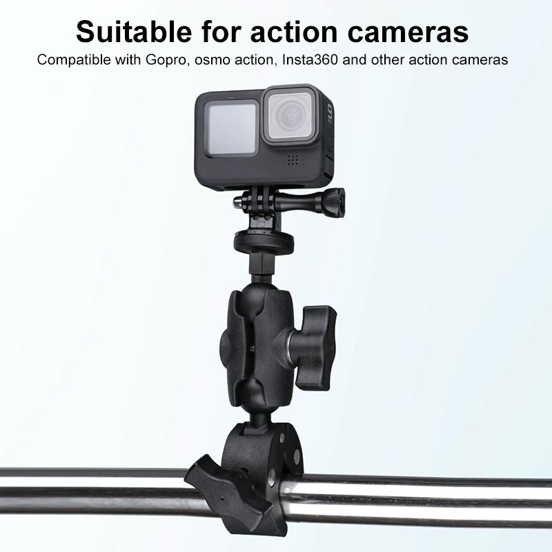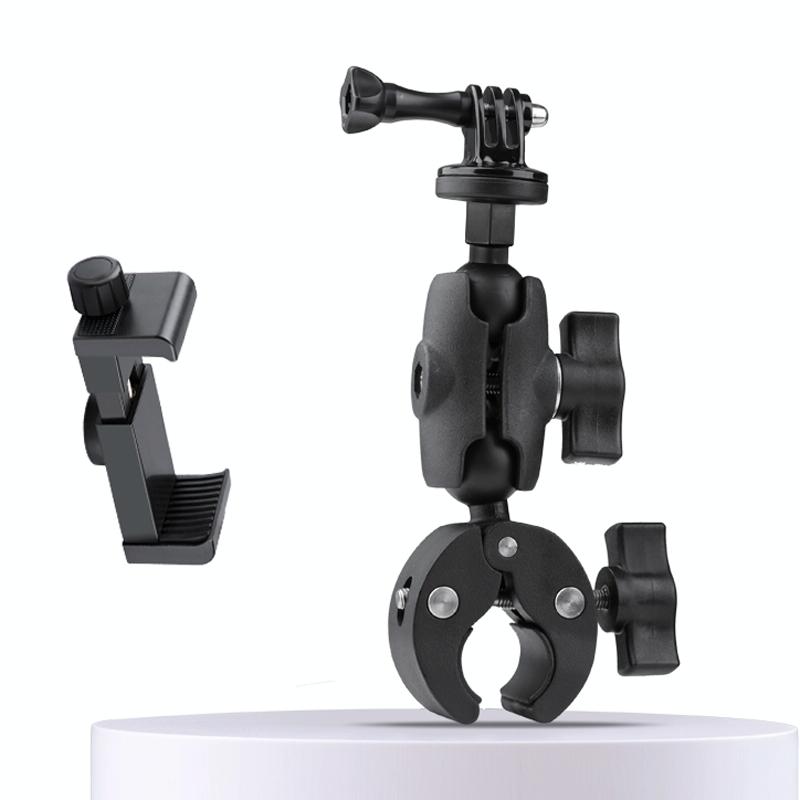 360 Rotation Adjustable Action Camera Bike Motorcycle Handlebar Holder with Phone Clamp (Black)