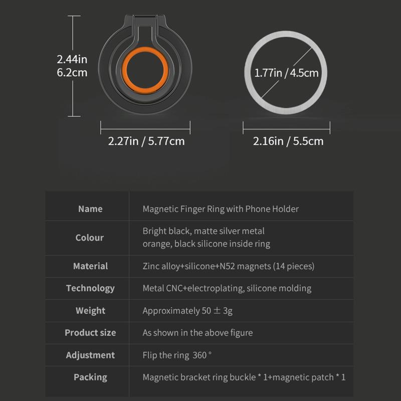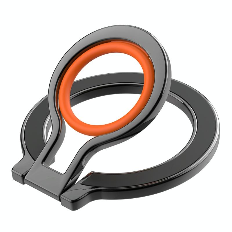 360 Rotations MagSafe Magnetic Finger Ring with Phone Holder(Black + Orange)