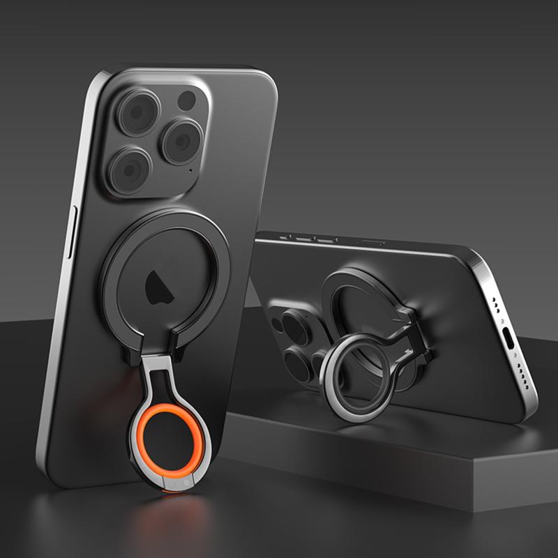 360 Rotations MagSafe Magnetic Finger Ring with Phone Holder(Silver + Orange)