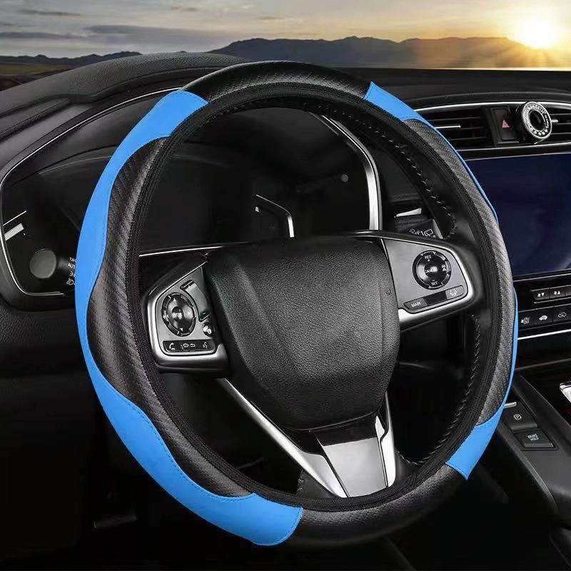 38cm Carbon Fiber Elastic Leather Without Inner Ring Car Steering Wheel Cover, Color: Blue