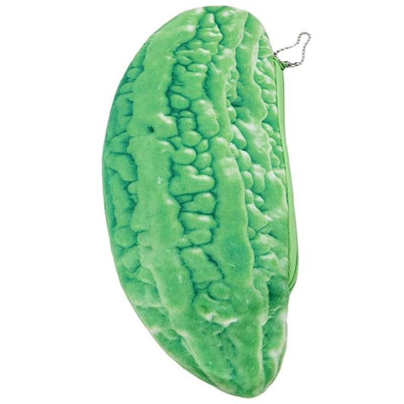 3D Simulation Ingredients Vegetable Plush Pencil Pouch Large Pen Case Student Stationery, Style: Bitter Melon