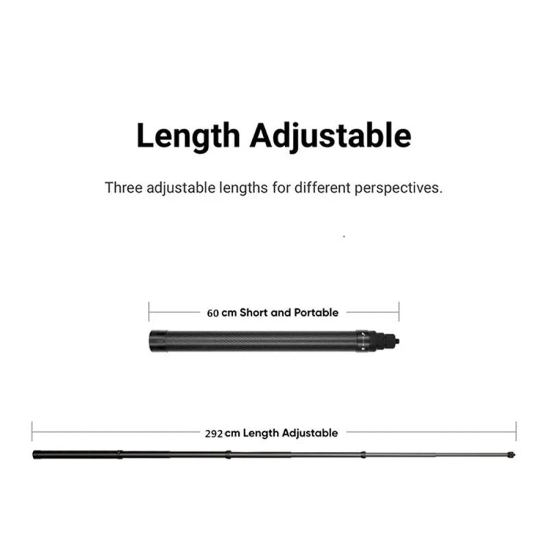 3m Carbon Fiber Extended Monopod Invisible Selfie Stick For Insta360 / DJI Action / GoPro / Xiao Yi Sports Camera
