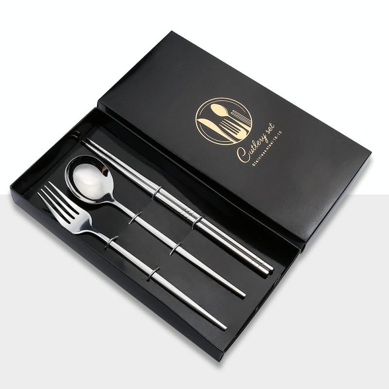 3pcs /Pack Stainless Steel Glossy Mirror Flatware Gift Set, Style: With Chopsticks (Silver)