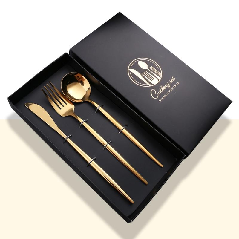 3pcs /Pack Stainless Steel Glossy Mirror Flatware Gift Set, Style: With Knife (Titanium)