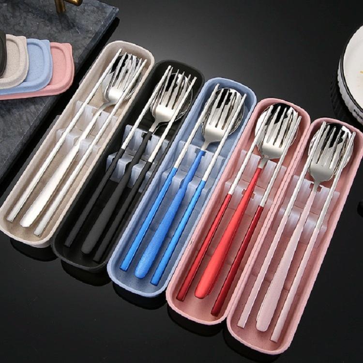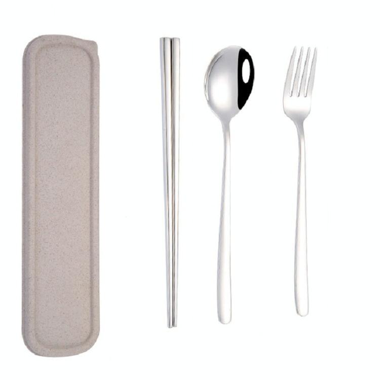 3pcs / Set Portable Stainless Steel Tableware Creative Set Chopsticks Spoon Fork Gift, Color:Steel
