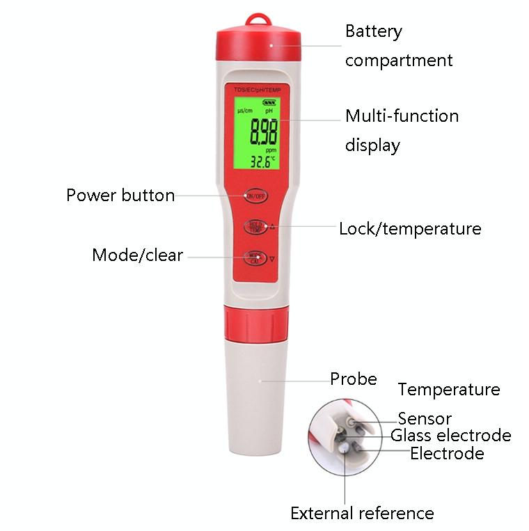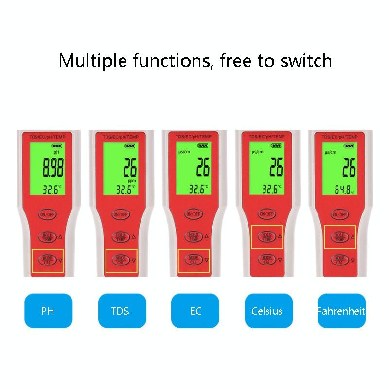 1. Measuring range: PH: 0.00-16.00ph; TDS: 0-19990ppm; EC: 0-19990μs/cm
