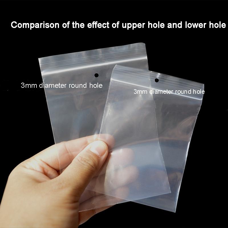 4 x 6cm 100pcs Perforated Ziplock Bag Thickened Transparent Packaging Bag Plastic Sealed Bag(Lower Hole)