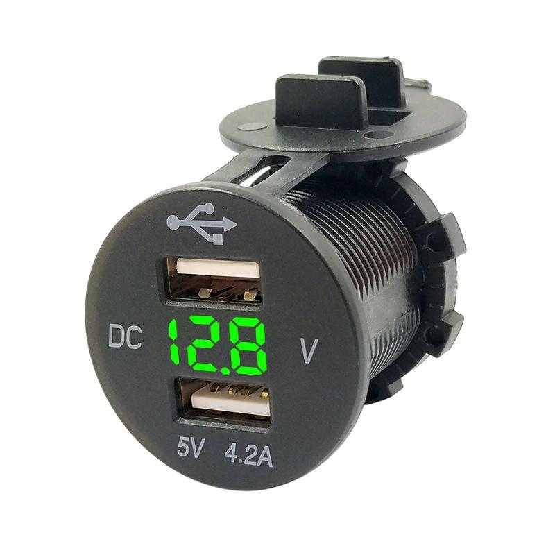 4.2A Dual USB With Voltage Display Mobile Phone Charger Socket Power Supply 12V Car Motorcycle(Green Light)
