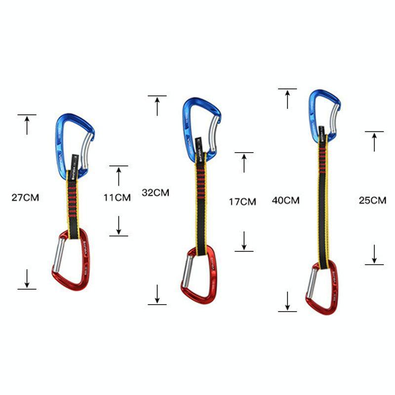 7. One end of the climbing quick-draw is designed with a straight door, which is mainly used for connecting the protective pads on the rock wall when climbing the rock wall; the fixed end adopts a curved door quick-draw