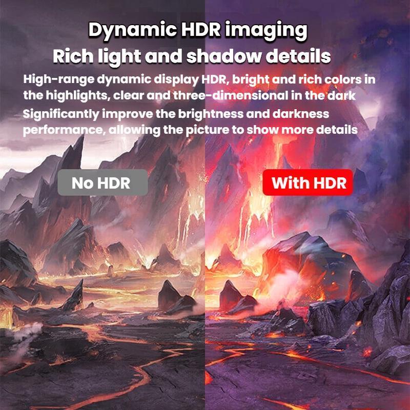 3. High dynamic range display HDR, with vivid and rich colors in bright areas and clear and three-dimensional images in dark areas, greatly improving the degree of light and dark expression and allowing the screen to display more detailed content