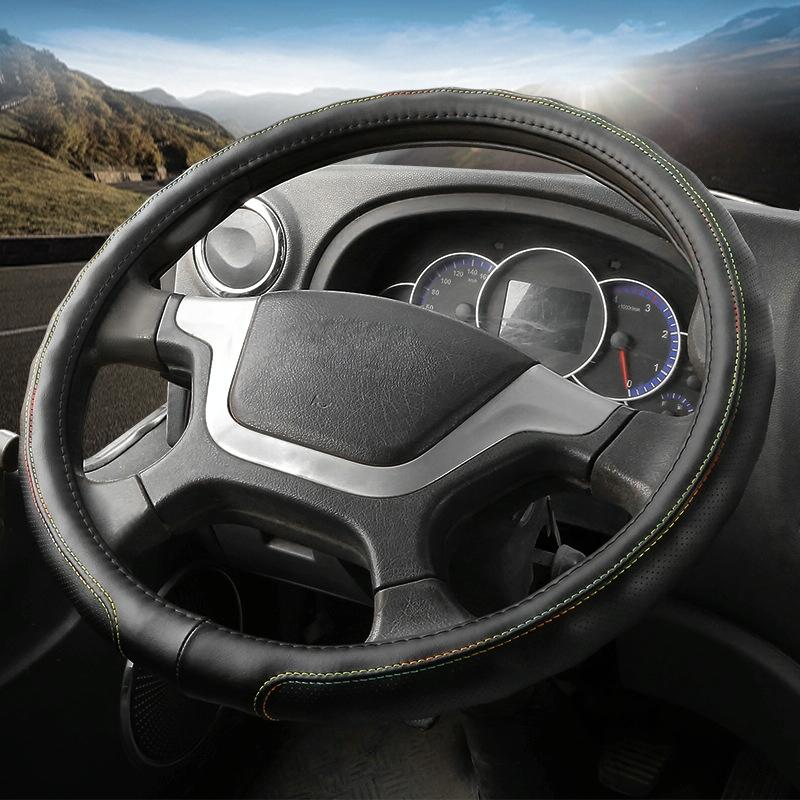 42cm Leather Truck Steering Wheel Cover(Black Line)