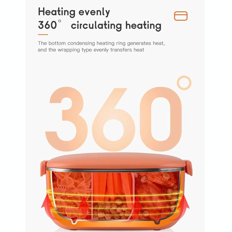 48W 1L 304 Stainless Steel Heating Lunch Box Can Be Plugged In EU Plug(Orange)