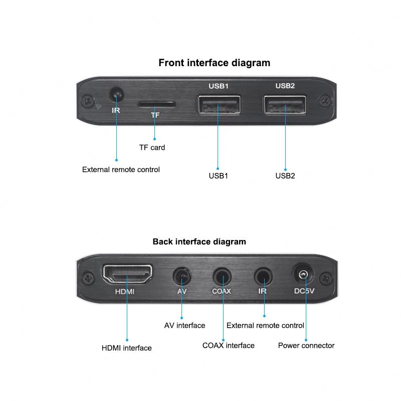 Support HDMI+AV+USB+MiniSD, decoding h. 265/ h. 264 video
