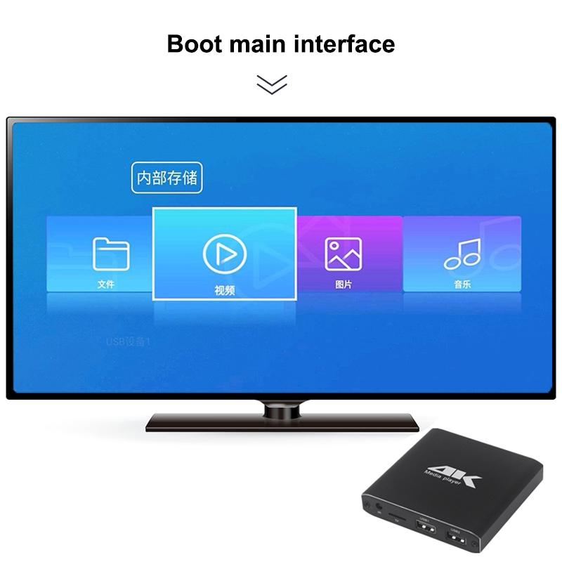 4K hd player is powered on and automatically plays video, pictures, music, video supports power off memory playback
