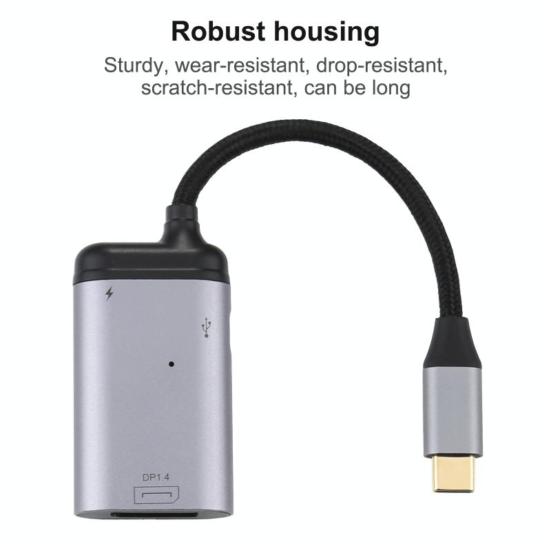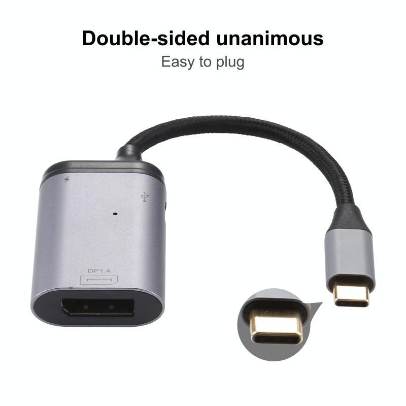 7. 1x large DP female, 1xPD, 1xType-c data port (USB 2.0, 1x power indicator blue light)