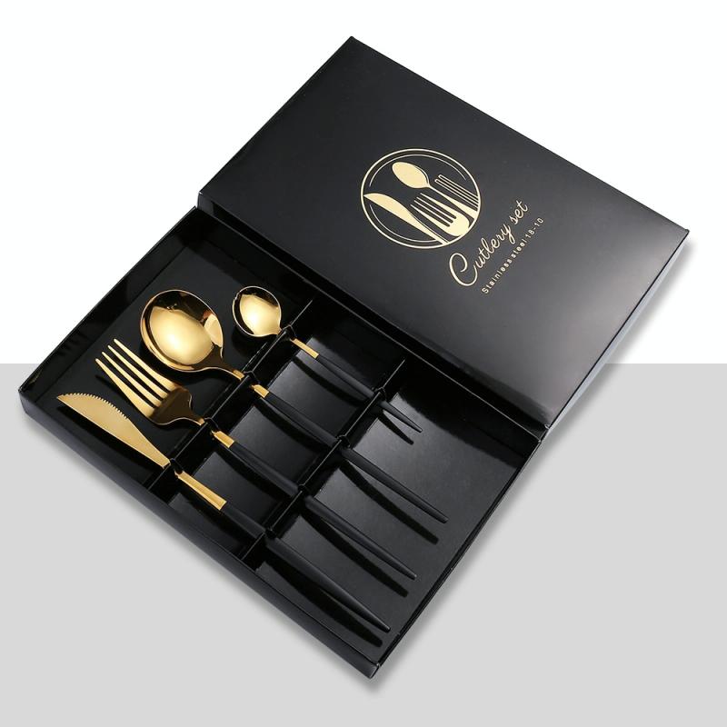 4pcs /Pack Stainless Steel Glossy Mirror Flatware Gift Set, Style: With Tea Spoon (Black Golden)