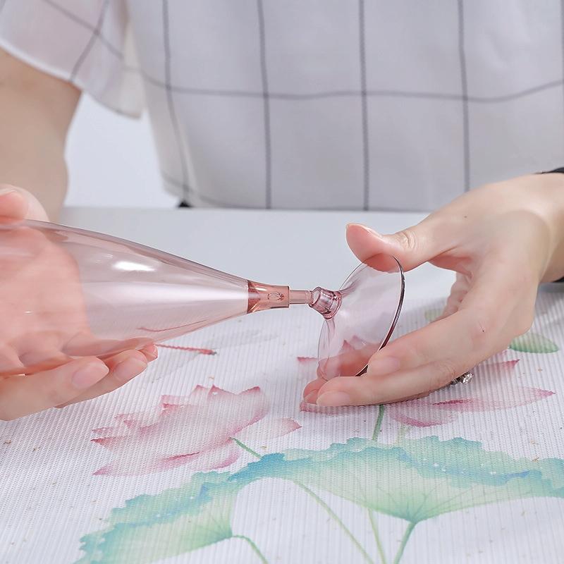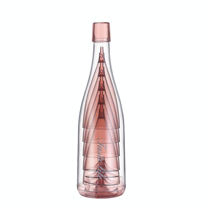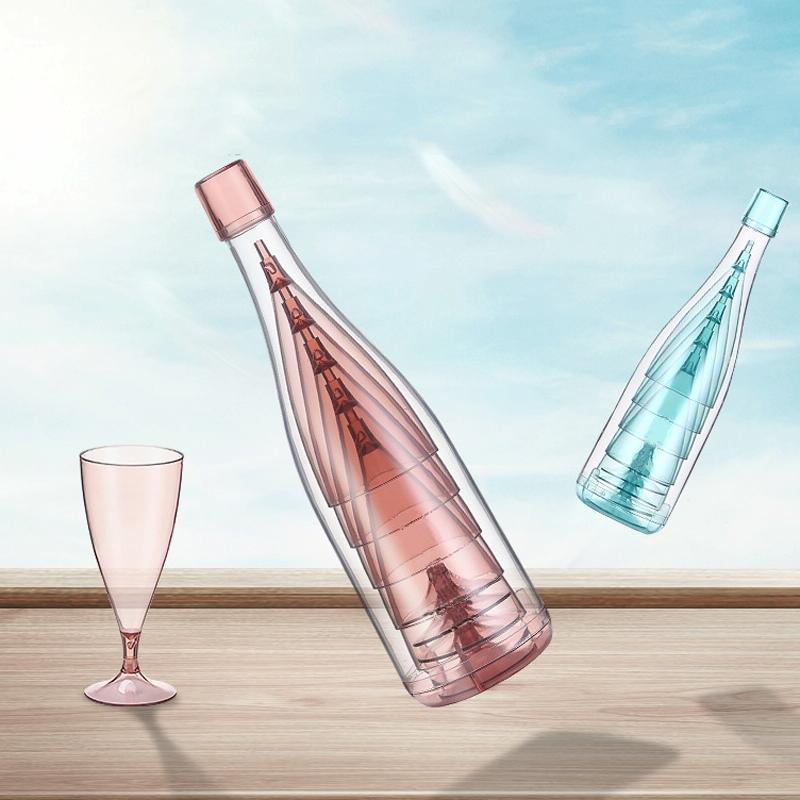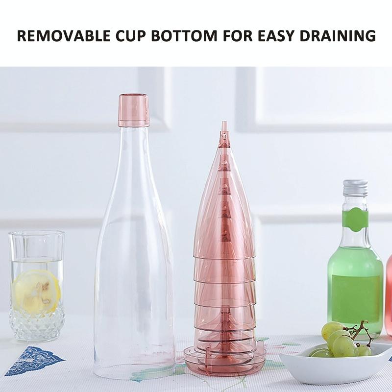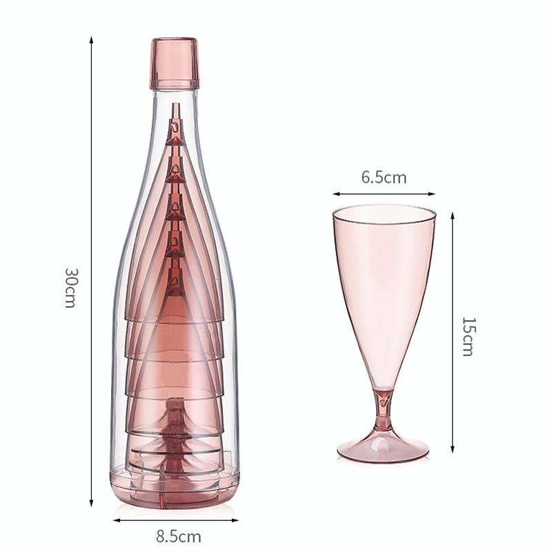 5 Champagne Wine Glasses + Wine Bottle Set Transparent Plastic Cup for Picnics(Transparent Pink)
