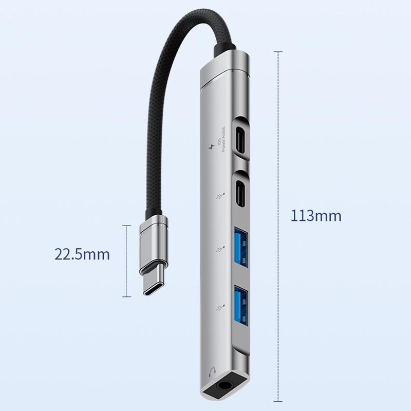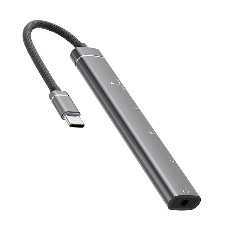 5 in 1 USB-C / Type-C Interface Multi-function HUB Adapter(Grey)