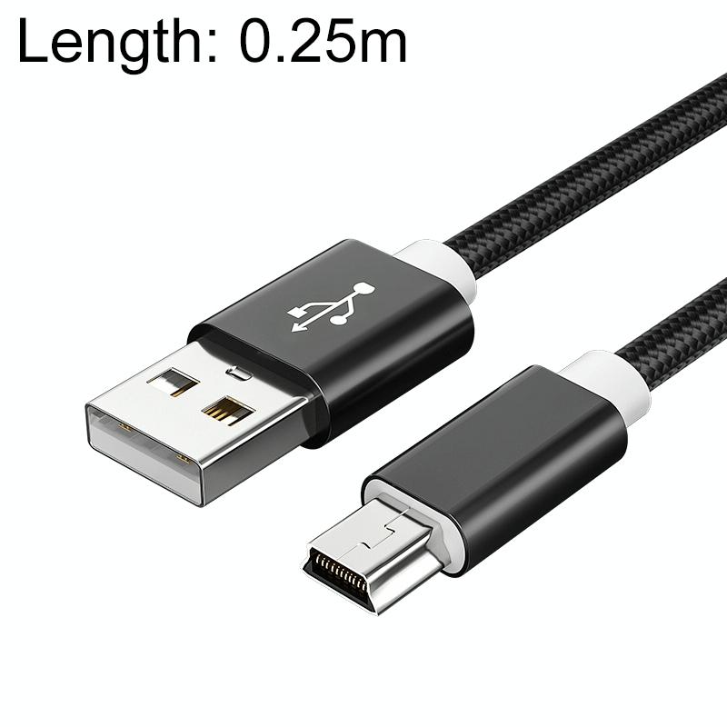 5 PCS Mini USB to USB A Woven Data / Charge Cable for MP3, Camera, Car DVR, Length:0.25m(Black)
