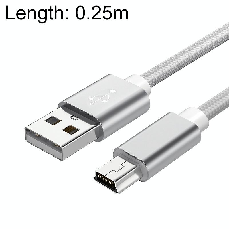 5 PCS Mini USB to USB A Woven Data / Charge Cable for MP3, Camera, Car DVR, Length:0.25m(Silver)