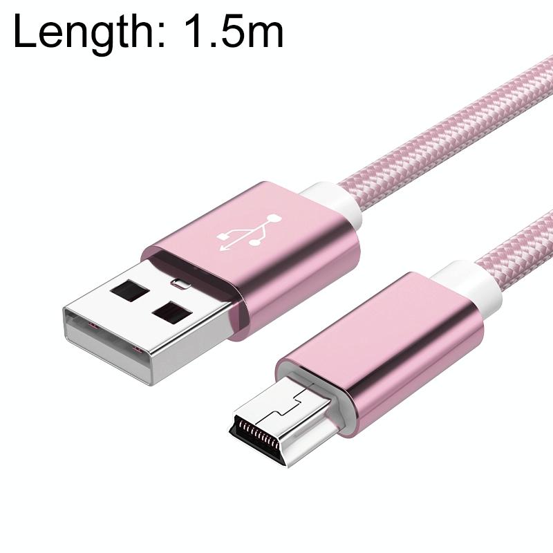 5 PCS Mini USB to USB A Woven Data / Charge Cable for MP3, Camera, Car DVR, Length:1.5m(Rose Gold)