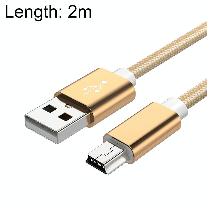 5 PCS Mini USB to USB A Woven Data / Charge Cable for MP3, Camera, Car DVR, Length:2m(Gold)
