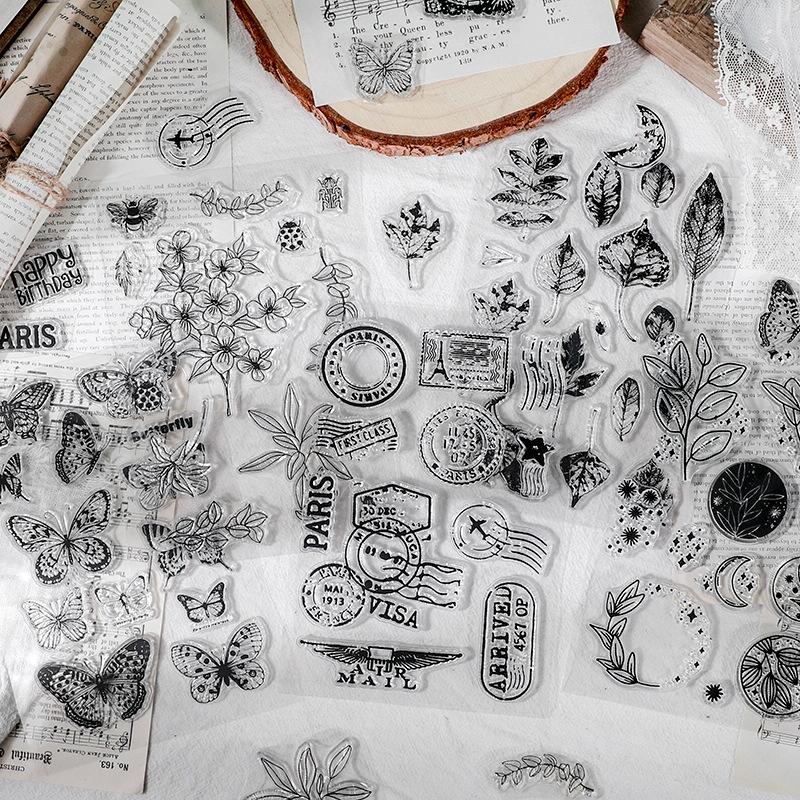 5 PCS Vintage Botanical Arrangement Handbook Clear Silicone Stamp(Plant Material)