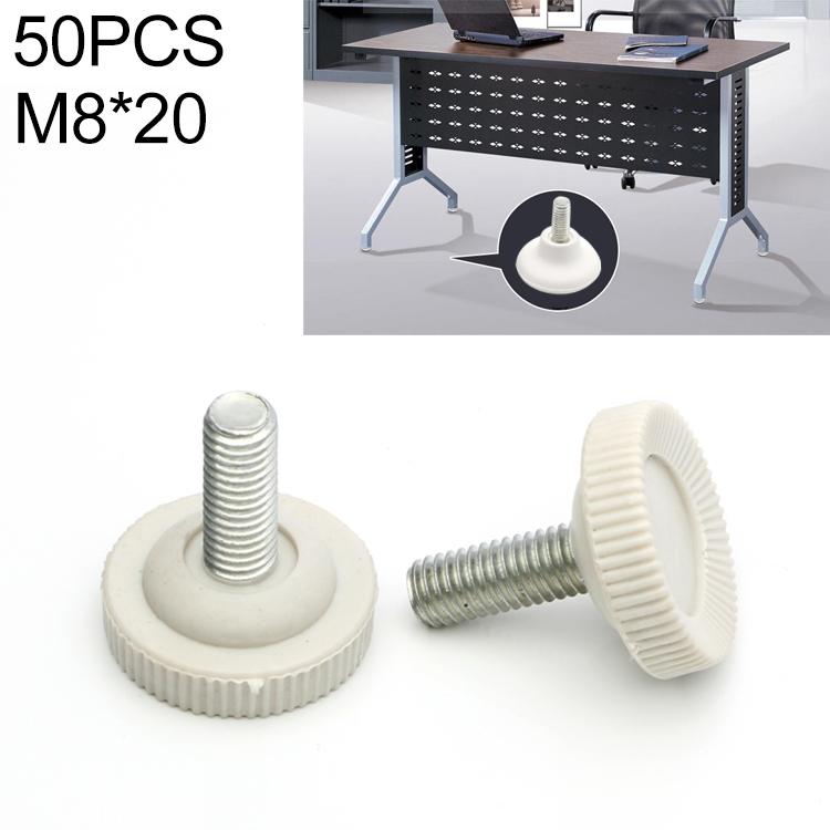 50 PCS Adjustable Foot Pad Furniture Screw Support Stub, M8x20 (White)