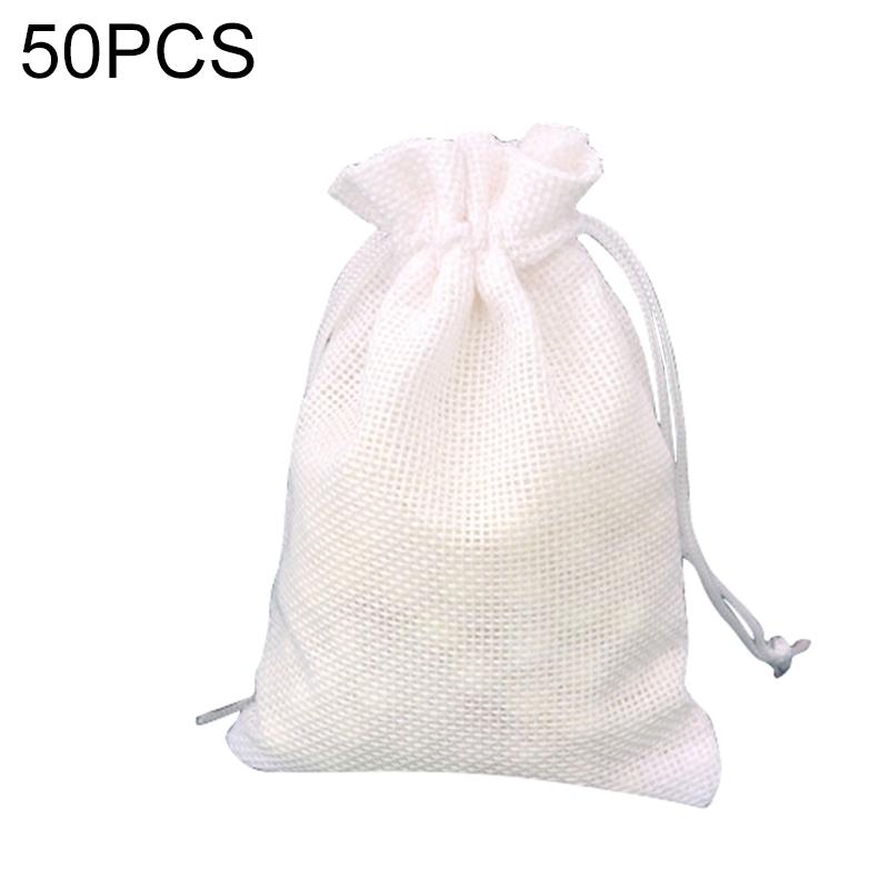 50 PCS Multi size Linen Jute Drawstring Gift Bags Sacks Wedding Birthday Party Favors Drawstring Gift Bags, Size:7x9cm(White)