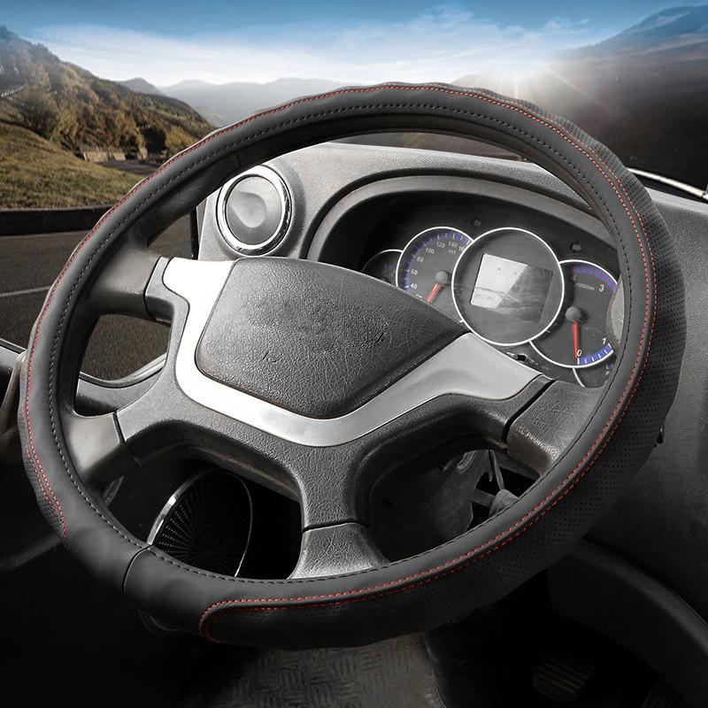 50cm Leather Truck Steering Wheel Cover(Black Red Line)