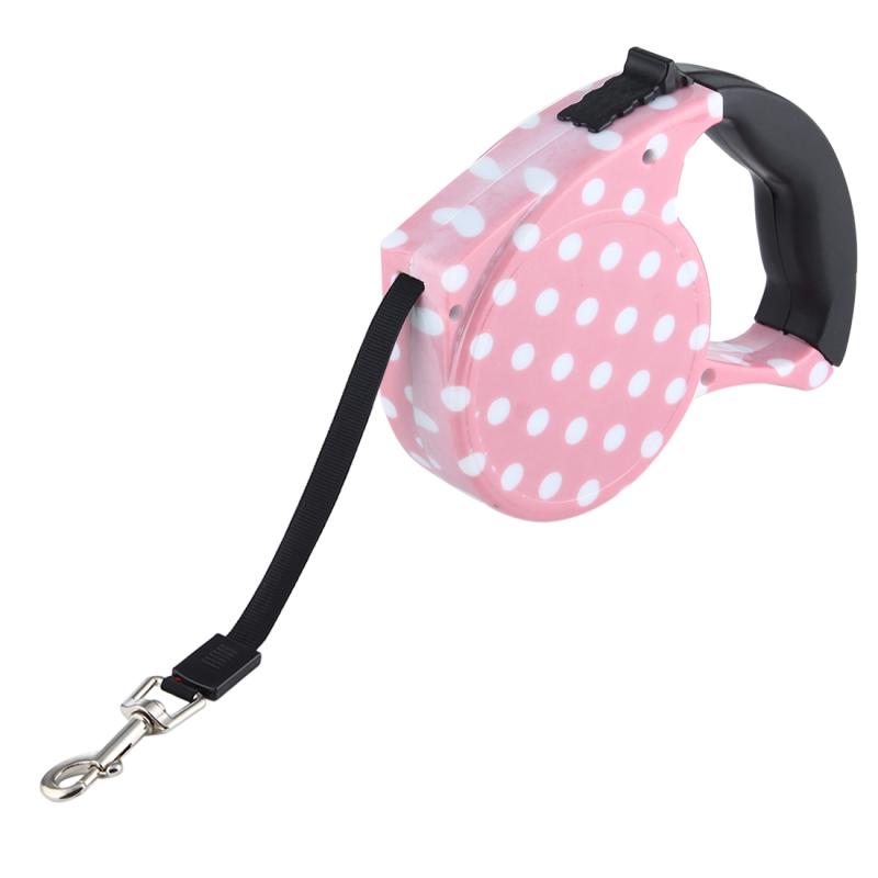 7. Fasten the leach hook onto the metal loop of your pet's collar, lock the leach at a desired length by pushing the lock button