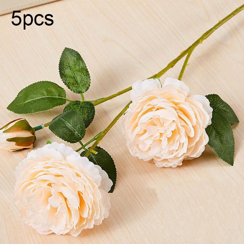 5pcs JC0055 Continental Core Flower Beam Wedding Simulation Flower Home Artificial Silk Flower(Peony Champagne)