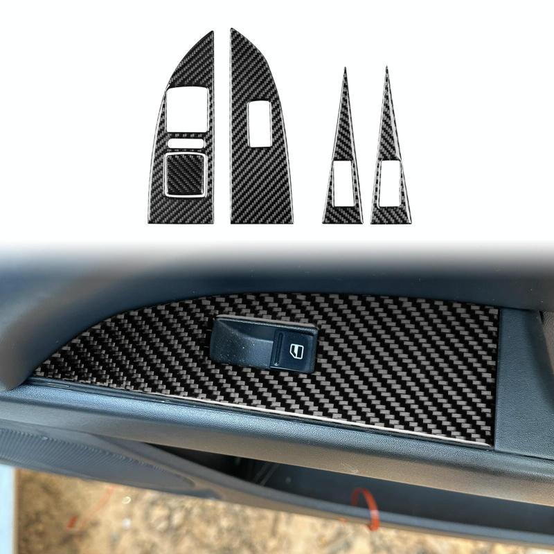 5pcs/Set Carbon Fiber Car Lifting Panel Decorative Sticker for SEAT Leon 2005-2012, Left Driver(Black)