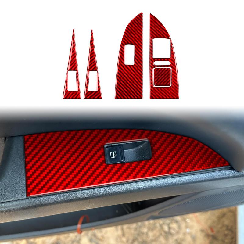 5pcs/Set Carbon Fiber Car Lifting Panel Decorative Sticker for SEAT Leon 2005-2012, Right Driver(Red)