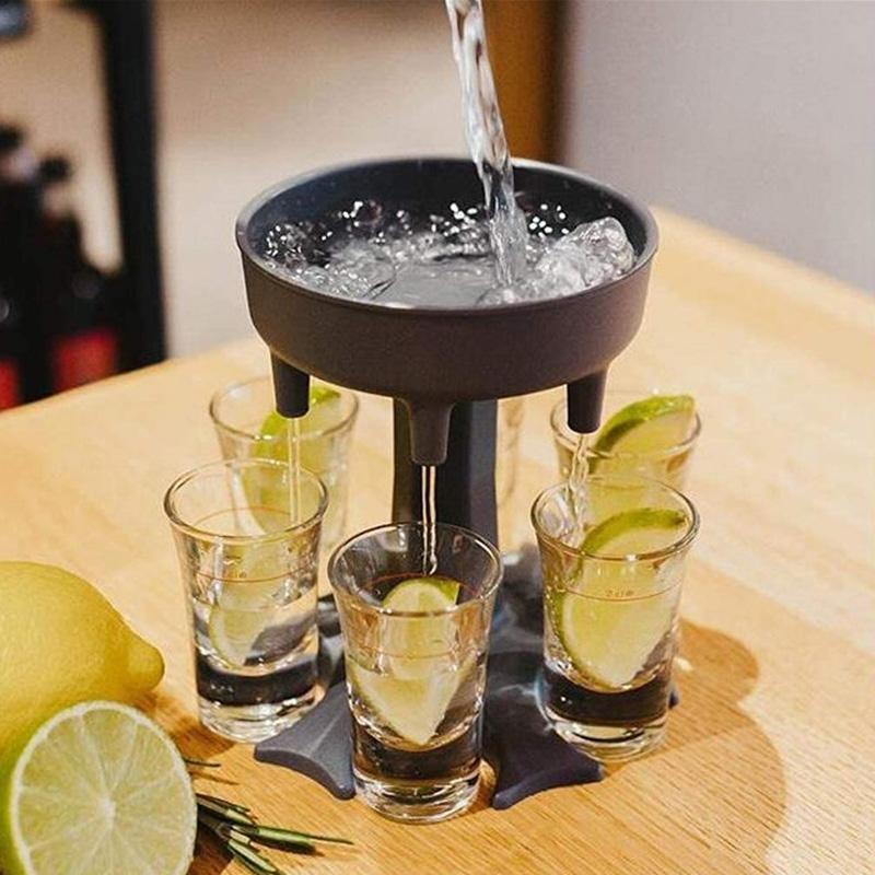 4. The liquid must be poured into the center to ensure even distribution into each small wine glass!