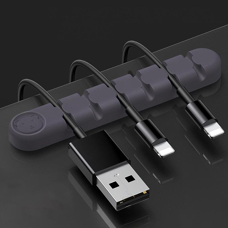 6 Holes Bear Silicone Desktop Data Cable Organizing And Fixing Device(Lavender Gray)