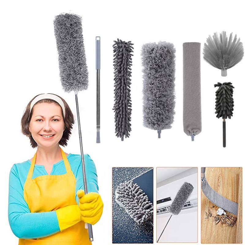 -6-piece set: telescopic pole + chenille brush + microfiber brush + crevice brush + cobweb brush + mini dust brush