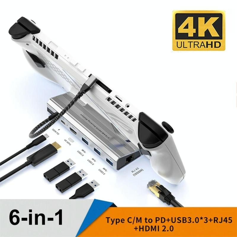 6 -in -1 For ASUS ROG Ally 100W PD Charging Game Console Stand Multifunctional USB 3.0 Docking Station