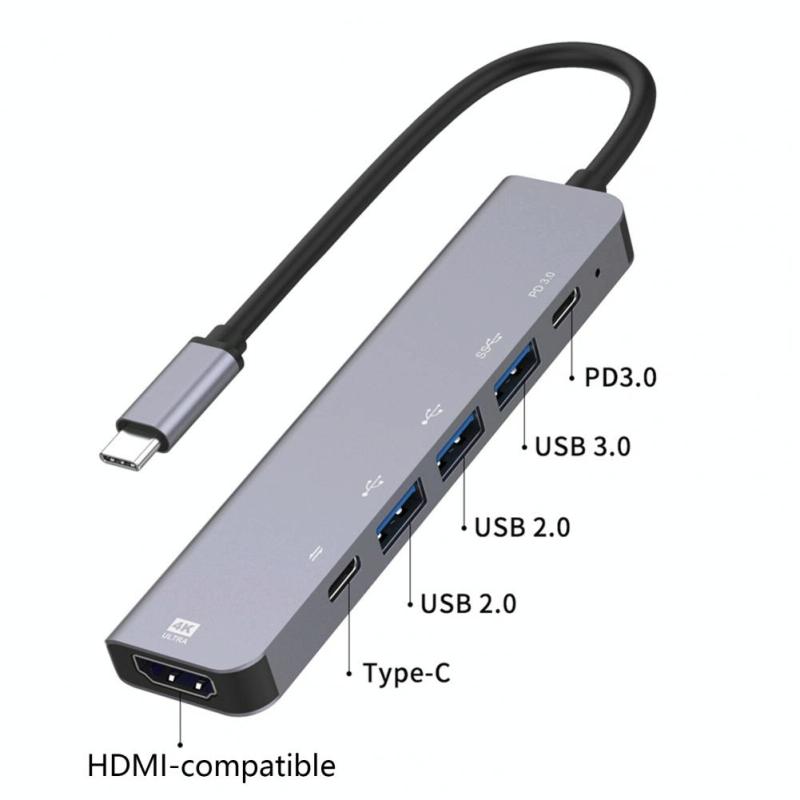 6-in-1 Type-C to HDMI + PD + Type-C + USB3.0 + USB2.0 x 2 Docking Station HUB Adapter