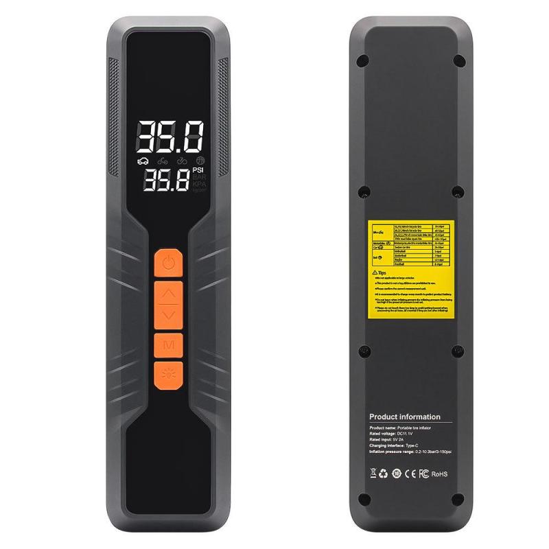 3. 5 Smart Inflation Modes: Switch easily between preset inflation modes for bike, motorcycle, car, ball, and custom mode by pressing the M button. Long-press the "M" to toggle pressure units: PSI / BAR / KPA / KG/CM2. Supports up to 150 PSI.